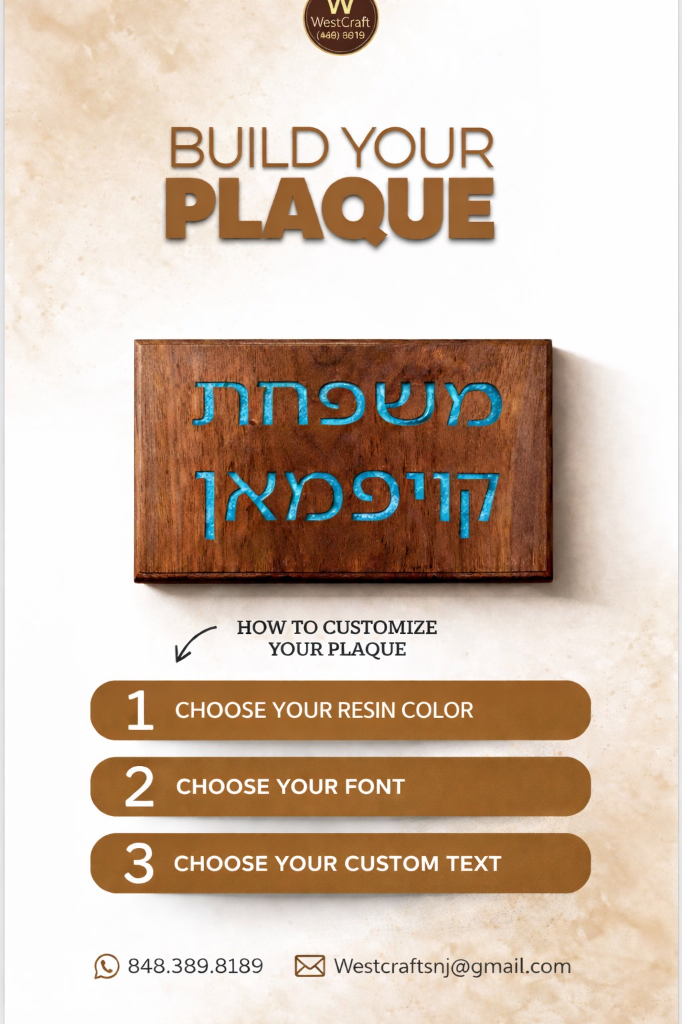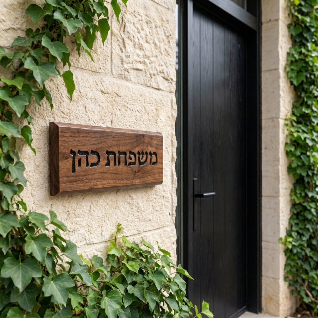 Make a statement at your entrance. Our custom walnut door plaques feature deep engravings filled with vibrant epoxy resin or metallic colors. Weather-resistant finish suitable for covered outdoor use or indoor apartment doors.